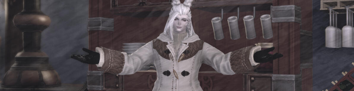 A middle-aged, mute veena viera with a charmingly lopped right ear. He's a lazy, laid-back sort, witty and blunt to just about everyone- even his friends.Those who stick by him despite- or perhaps because of- his antics, however, notice their tabs going unmentioned and extra food in their orders, with a bit of extra advice when they speak of their everyday struggles.